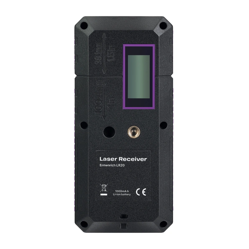 Ermenrich LR20 - это лазерный приёмник, который помогает лучше работать с лазерными уровнями. Особенно когда нужно измерять большие расстояния, работать при ярком свете. лазерный приёмник хорошо определяет зелёные и красные лучи на расстоянии до 50 метров, а также поддерживает два режима точности: точный (прибл. 2 мм погрешности) и обычный (прибл. 3 мм). Когда прибор ловит луч, то сразу сигнализирует об этом, с помощью индикаторов и зуммера. Громкость зуммера можно настроить, а также выключить совсем, если необходима тишина.
