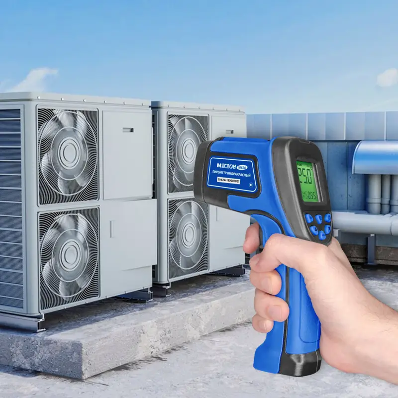 Диапазон работы от -50 до 750 °C позволяет анализировать состояние нагревательных элементов, двигателей, теплообменников, металлоконструкций и иных объектов, подверженных высоким температурам. Погрешность измерений зависит от диапазона: ±3 °C в отрицательных значениях, 2% или 2 °C (выбирается большее значение) в диапазоне 0–100 °C, и большее из этих двух значений при температурах выше 100 °C. Подобное распределение необходимо для корректности показаний в разных условиях. Разрешение в 0,1 °C позволяет фиксировать небольшие изменения температуры, что важно для детальной диагностики.