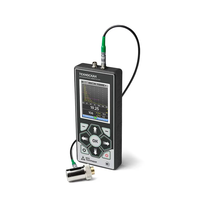 Ультразвуковой дефектоскоп Техно‑НДТ ТЕХНОСКАН представляет собой портативный цифровой прибор для неразрушающего контроля материалов и изделий. Устройство сочетает компактность, функциональность и простоту эксплуатации, что делает его удобным инструментом для работы в труднодоступных местах и в полевых условиях.