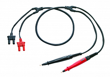 4-х проводный измерительный кабель (KELVIN -4х2) с наконечниками «щуп» (соосное расположение наконечников). Центральный контакт–тип «Игла» (неподвижен), внешний контакт подпружинен, напряжение до 300 Впост. Коннекторы типа "банан" 4 мм в изоляции («вилка»).