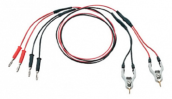 4-проводной измерительный кабель (красный, черный): соединитель «банан» 4 мм х 2 зажима «крокодил» с макс. раскрывом 7 мм. Может применяться в вольтметрах и мультиметрах, поддерживающих измерение сопротивления 4-х проводным методом.