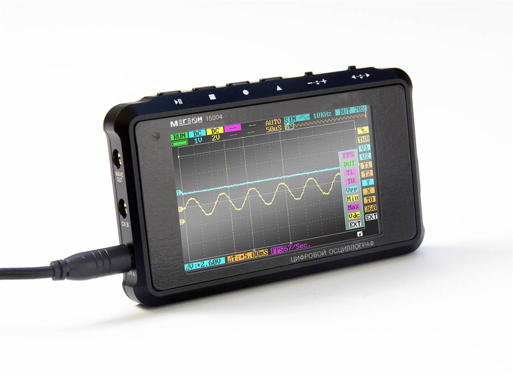 Вместе с осциллографом поставляется пара пробников для подключения к тестируемым устройствам. Прибор имеет полосу пропускания до 8 МГц, обеспечивая высокую точность при анализе и отображении на дисплее осциллограмм сигналов с частотами, не превышающими это значение. Внутреннее разрешение устройства составляет 8 бит.