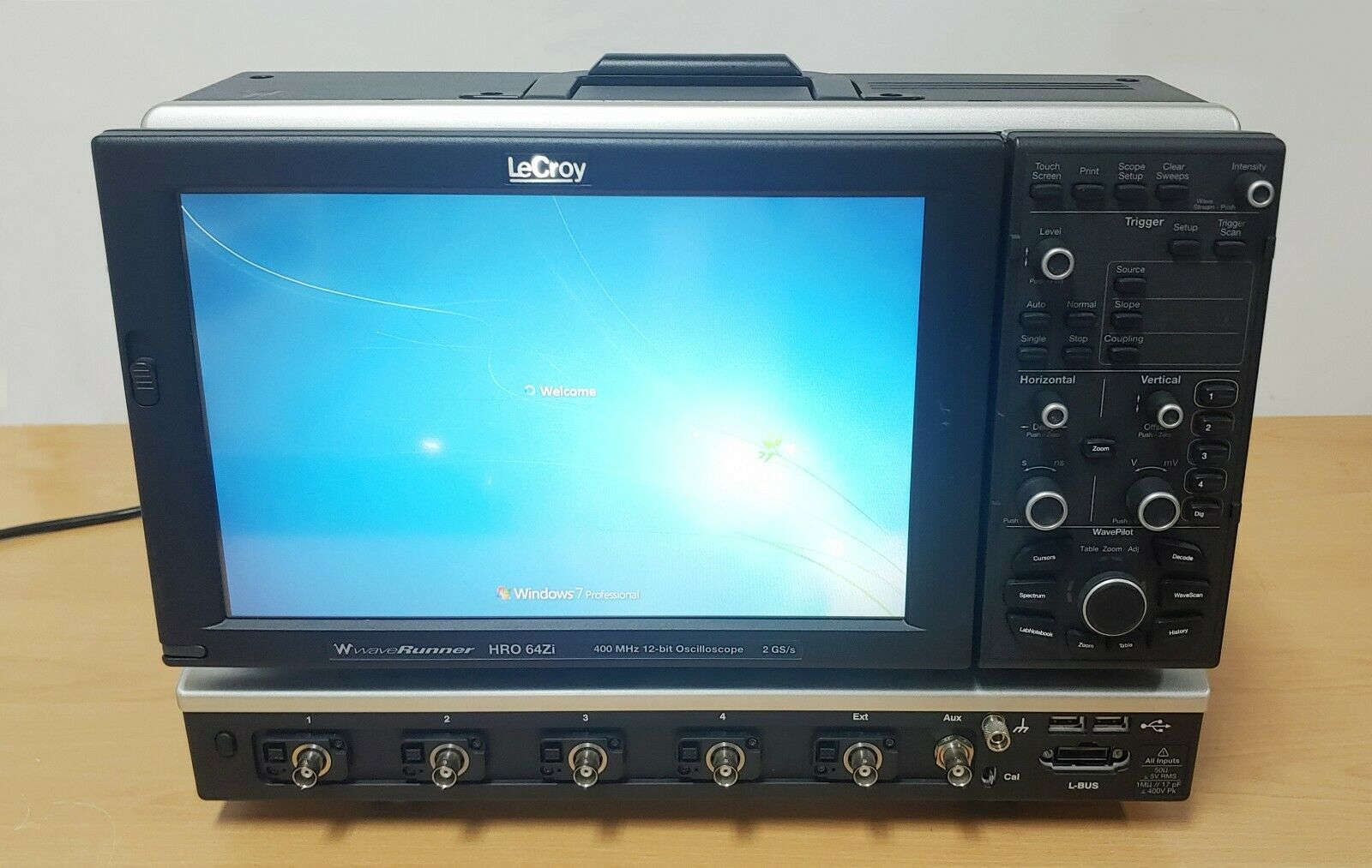 Осциллограф LeCroy HRO64Zi является высокопроизводительным прибором для исследования электрических сигналов, обладает четырьмя каналами, пропускной способностью в 400 МГц и встроенным 12-ти битным АЦП (аналого-цифровым преобразователем).