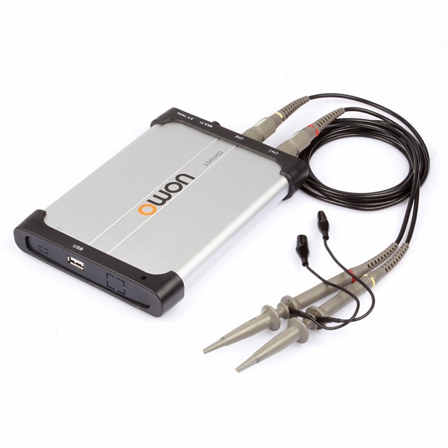 Осциллограф имеет гальваническую развязку от ПК по питанию, полосу пропускания 25 МГц и обладает выборкой 100 МВ/с